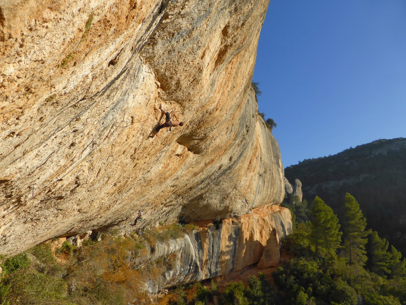 Yo sigo con mi "Rambla" particular, "El Priorato de Sion 9a??" que a días lo veo muy cerca y otros días consigue desesperarme, así que para no agobiarme entre pegue y pegue dejo listo otro proyecto en la cueva "Pipe Line"; habrá que ir probando... También hago la primera de la que puede que sea la combo más guapa de la cueva "Desafiando a Noa" unos 55 metros de techo (si no son más) y mucha, mucha resistencia, podría rondar el 8c+, ya se confirmará, Citro también anda probándola y dándose buenas excursiones por ese techo!!!